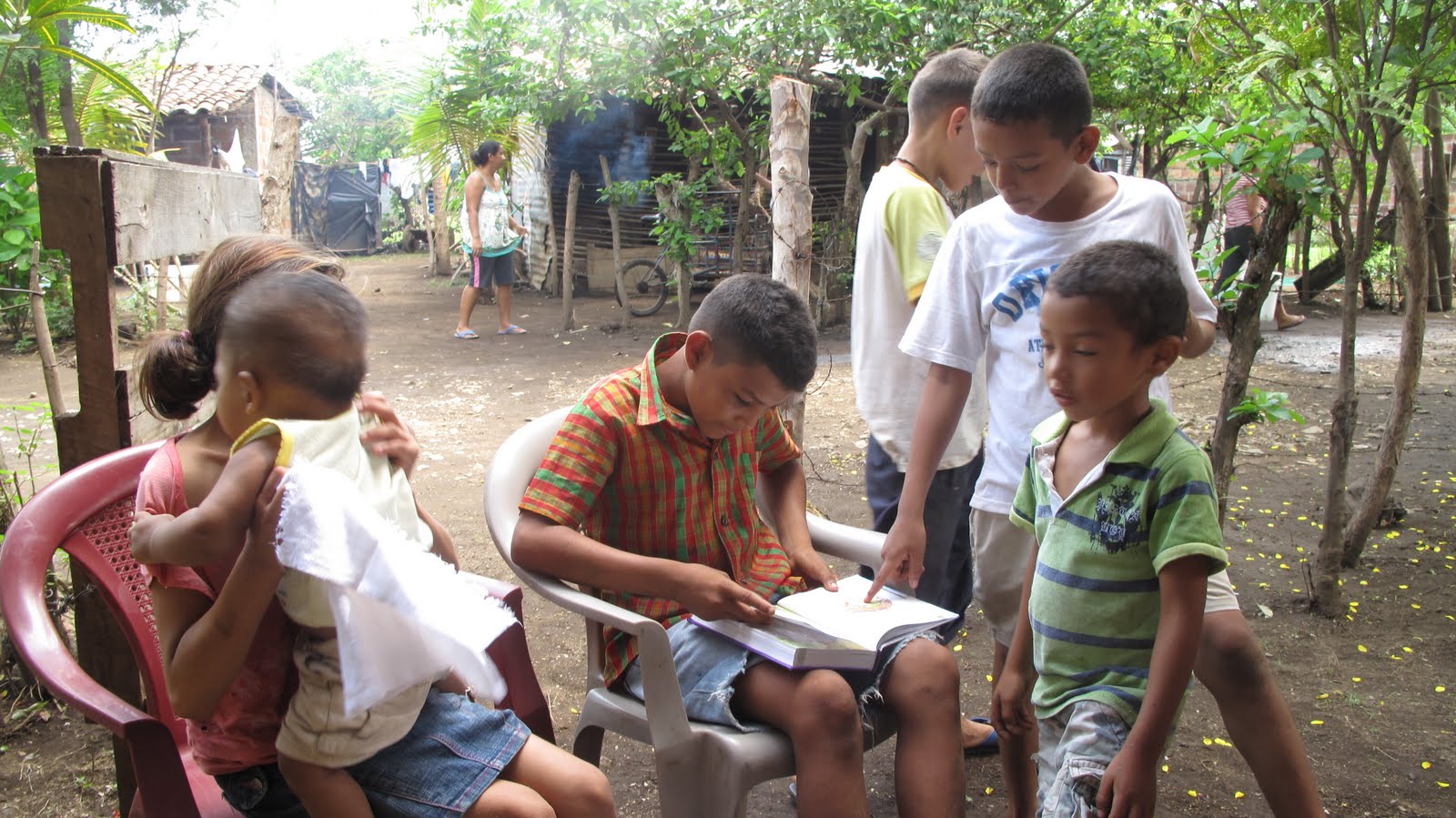 Kenia had little squares of construction paper with holes punched in them for the kids to wear as nametags, and told ME to find out what their names were and write them down and tie them around their neck with yarn. Ummmm...excuse me?? I'm the gringa here! Haha... So off I went, with more and more kids streaming in every time I looked up. It was actually really fun :) I could get most of the names, I mean some of them were like Kevin (well, he was a 2 month old baby, who I ended up hogging and carrying around most of the afternoon while I did everything else!), Jennifer, Caroline, Billy, Justin, Jonathan...but they don't just say Jennifer like we do!! It sounds COMPLETELY different when they say it! Lester and Edwin and Maribel and some other ones I couldn't even figure out! Sometimes Kenia would have to tell me what they were saying, and sometimes she'd still even have to spell it to me! If she wasn't around, one of the moms was there and she was so sweet, she would do her best to help me by spelling it, but I had tp remember when they say E it means I and when they say our A sound is their E, etc! Sometimes she would just draw the letter in the dirt for me when I really wasn't getting it! So yea, THAT took forever, and kids were still walking in after we had already started our activities! There were DEFINITELY over 50 kids there! It was so cool to see! :)